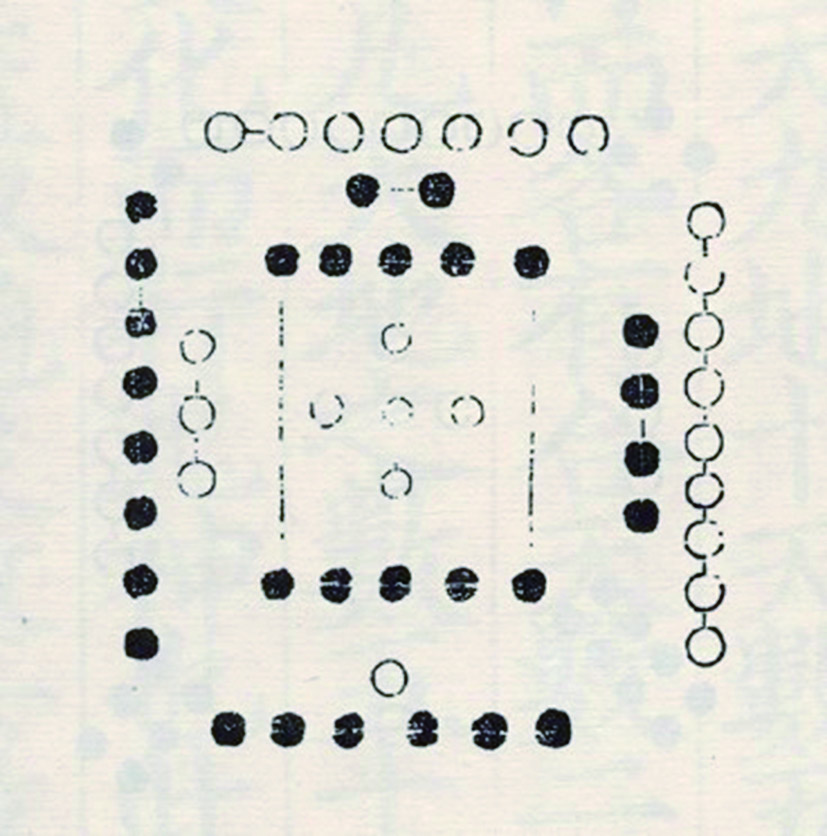 依據(jù)《宋史》的記載,黑白點(diǎn)圖示《河圖》《洛書》的創(chuàng)作可以追溯到五代末期的陳摶。然而這種記載也只是一種源自北宋時(shí)期的傳說,并沒有實(shí)際證據(jù)。從我們?nèi)缃袼芤姷降氖妨蟻砜矗诎c(diǎn)圖示《河圖》《洛書》最早出現(xiàn)在北宋劉牧編纂的《易數(shù)鉤隱圖》中。