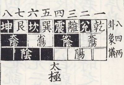 然而,到了宋代之后,邵雍等學(xué)者不再滿足于這種流傳已久的八卦理論,開始嘗試著另辟蹊徑,探尋八卦符號體系變化中的其他可能。朱熹在邵雍發(fā)明的“加一倍法”等數(shù)理學(xué)說的基礎(chǔ)上,發(fā)明了“逐爻漸生法”,并以黑白點(diǎn)、塊為形式,繪制出了《先天八卦次序圖》;又以“乾南、坤北、離東、坎西”為坐標(biāo),繪制出了更合于儒家倫理的《先天八卦方位圖》。為了與“先天八卦”加以區(qū)分,宋代學(xué)者又把《說卦》中的八卦次序和方位稱為“后天八卦”。需要注意的是,雖然頂著“先天”之名,但無論是《先天八卦次序圖》還是《先天八卦方位圖》,都產(chǎn)生于宋代,是遠(yuǎn)遠(yuǎn)晚于后天八卦的。在《周易本義》中,朱熹并未貪功,將先天圖的作者讓給了邵雍,但如果沒有朱熹的理論改造與圖像創(chuàng)作,如今的先天圖系統(tǒng)是無法構(gòu)建完成的。