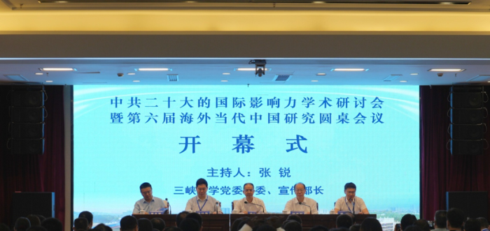 2023年6月17日,“中共二十大的國(guó)際影響力學(xué)術(shù)研討會(huì)暨第六屆海外當(dāng)代中國(guó)研究圓桌會(huì)議”在湖北宜昌召開。這次會(huì)議是經(jīng)中央黨史和文獻(xiàn)研究院領(lǐng)導(dǎo)批準(zhǔn)的院五年規(guī)劃項(xiàng)目和國(guó)家高端智庫(kù)年度工作計(jì)劃中一項(xiàng)重要學(xué)術(shù)活動(dòng),院對(duì)外合作交流局與武漢大學(xué)馬克思主義學(xué)院聯(lián)合主辦、三峽大學(xué)承辦。中央黨史和文獻(xiàn)研究院對(duì)外合作交流局局長(zhǎng)楊明偉,武漢大學(xué)黨委副書記、馬克思主義學(xué)院院長(zhǎng)沈壯海,三峽大學(xué)黨委書記何偉軍出席會(huì)議并致辭。
