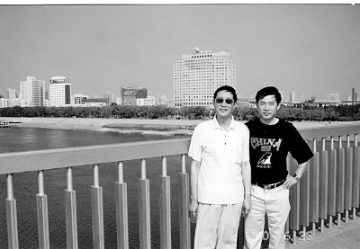 2000年,吳元邁(左)與劉文飛在黑龍江哈爾濱松花江合影。劉文飛供圖