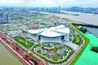 空中俯瞰位于廣州市南沙新區(qū)橫瀝島尖的國(guó)際金融論壇(IFF)永久會(huì)址。新華社發(fā)