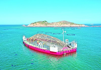 福建省連江縣定海灣內(nèi)的“振漁1號(hào)”深遠(yuǎn)海養(yǎng)殖平臺(tái)。新華社發(fā)