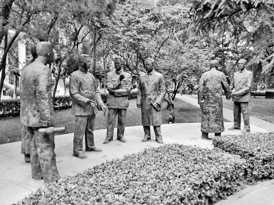 山東大學(xué)校園內(nèi)八大教授雕塑(右三為楊向奎) 作者供圖