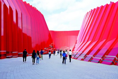 貴州大力推進“紅飄帶”項目,用“藝術(shù)+科技”講述長征故事,傳承紅色基因。圖為觀眾準(zhǔn)備進入“紅飄帶”數(shù)字體驗館。新華社發(fā)