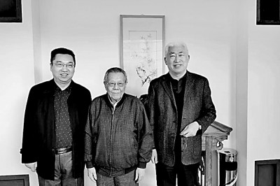 程毅中與同事李巖(左)、徐俊(右)在一起。