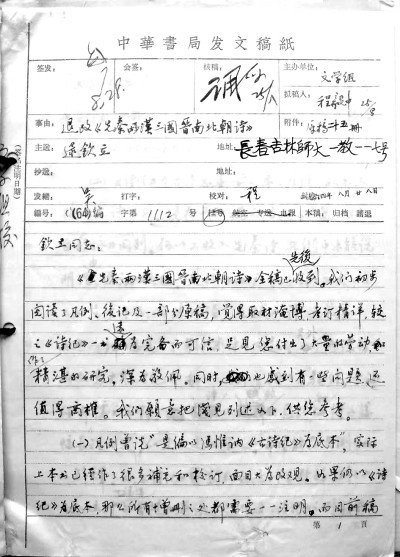 《先秦漢魏晉南北朝詩》審稿意見