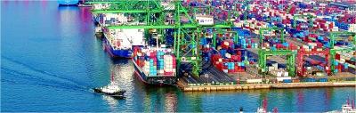 貨輪?吭谔旖蚋奂b箱碼頭。新華社發(fā)