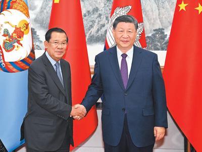 習(xí)近平指出,當(dāng)前,國際形勢變亂交織,全球性挑戰(zhàn)層出不窮,考驗(yàn)著各國的應(yīng)對和選擇。中柬兩國都致力于做世界的和平力量、發(fā)展力量、進(jìn)步力量。中方將繼續(xù)支持柬埔寨在國際和地區(qū)事務(wù)中發(fā)揮更大作用,壯大“全球南方”力量,支持東盟堅(jiān)持戰(zhàn)略自主,維護(hù)中心地位,堅(jiān)決反對外部勢力將冷戰(zhàn)思維引入本地區(qū),堅(jiān)定不移推動?xùn)|盟一體化和共同體建設(shè)。中方愿同柬方堅(jiān)定道不改、志不變的決心,增強(qiáng)底線思維,加強(qiáng)協(xié)作和配合,共同應(yīng)對各種風(fēng)險(xiǎn)。