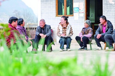 貴州省岑鞏縣注溪鎮(zhèn)周坪村駐村干部(中)走訪群眾。新華社發(fā)