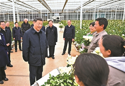 19日下午,習(xí)近平來到麗江現(xiàn)代花卉產(chǎn)業(yè)園。在展廳,他察看玫瑰、馬蹄蓮鮮切花品種展示,聽取云南花卉產(chǎn)業(yè)發(fā)展情況介紹。在玫瑰花種植區(qū),他了解智能溫室無土栽培技術(shù),同現(xiàn)場村民、技術(shù)人員親切交談。他還來到玫瑰花分級包裝生產(chǎn)線,察看篩選、分級到包裝、發(fā)貨的全流程,對鮮切花通過物流及時外銷表示肯定。習(xí)近平指出,云南花卉產(chǎn)業(yè)前景廣闊,要著眼全產(chǎn)業(yè)鏈,從種業(yè)端、種植端、市場端不斷深耕細(xì)作,讓這一“美麗產(chǎn)業(yè)”成為造福群眾的“幸福產(chǎn)業(yè)”。