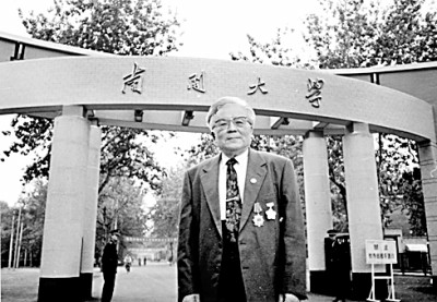 1999年,南開大學(xué)八十年校慶之際,來新夏于校門前留影紀(jì)念。照片由作者提供