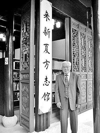 2007年2月,“來新夏方志館”在故鄉(xiāng)蕭山開館,次年3月留影。照片由作者提供