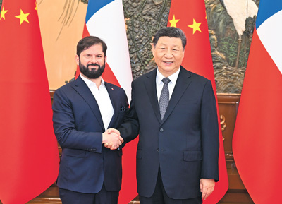 習(xí)近平強調(diào),中方愿同智方夯實政治互信,堅持相互尊重、平等相待、互利共贏,加強治國理政經(jīng)驗交流,在涉及彼此核心利益和重大關(guān)切問題上堅定相互支持,維護(hù)各自主權(quán)、安全、發(fā)展利益。雙方要落實好共建“一帶一路”合作規(guī)劃,深化農(nóng)林牧漁、產(chǎn)業(yè)投資、基礎(chǔ)設(shè)施、綠色礦產(chǎn)等領(lǐng)域合作,培育天文、極地、人工智能、生物醫(yī)藥、數(shù)字經(jīng)濟(jì)等新增長點。中方支持更多中國企業(yè)赴智利投資興業(yè),歡迎更多智利優(yōu)質(zhì)產(chǎn)品進(jìn)入中國市場。雙方要加強文明互鑒,開展好教育、文化、媒體、青年等交流活動,便利人員往來,為兩國關(guān)系長遠(yuǎn)發(fā)展奠定良好社會民意基礎(chǔ)。當(dāng)前,國際形勢變亂交織,單邊主義、保護(hù)主義逆流涌動,對國際經(jīng)貿(mào)秩序造成嚴(yán)重沖擊。作為多邊主義和自由貿(mào)易的堅定維護(hù)者,中智要加強多邊協(xié)作,捍衛(wèi)全球南方共同利益。
