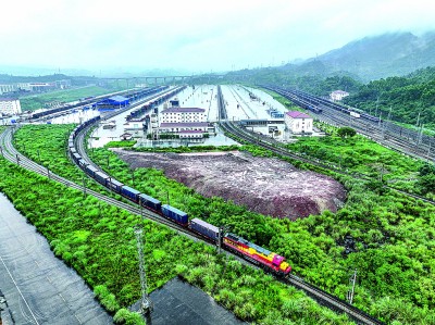 西部陸海新通道中老泰馬跨境鐵路班列在重慶江津小南埡站發(fā)車。新華社發(fā)