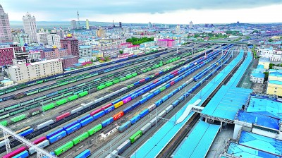 中歐班列已成為中國與“一帶一路”共建國家互聯(lián)互通互惠的重要載體。圖為中歐班列在中國鐵路哈爾濱局集團有限公司滿洲里站編組場內等待發(fā)車。