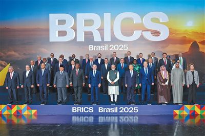 當(dāng)?shù)貢r(shí)間7月6日和7日,國(guó)務(wù)院總理李強(qiáng)在里約熱內(nèi)盧出席金磚國(guó)家領(lǐng)導(dǎo)人第十七次會(huì)晤第二及第三階段會(huì)議,圍繞加強(qiáng)多邊主義、人工智能、環(huán)境和氣候變化、全球衛(wèi)生等議題發(fā)表講話。這是7月7日,金磚成員國(guó)和伙伴國(guó)、嘉賓國(guó)領(lǐng)導(dǎo)人以及國(guó)際組織代表集體合影。