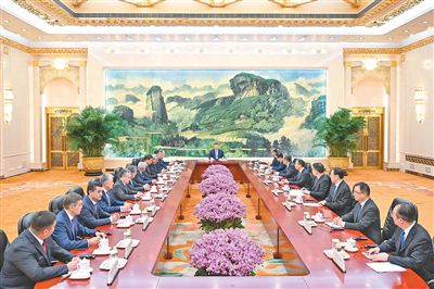 七月十五日上午,國家主席習近平在北京人民大會堂集體會見來華出席上海合作組織成員國外長理事會會議的各國外長和常設機構(gòu)負責人。