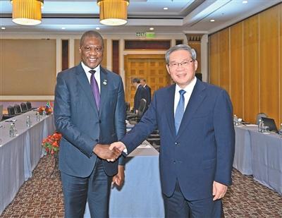 本報約翰內(nèi)斯堡11月23日電 (記者陳尚文、鄭翔)當?shù)貢r間11月23日,國務院總理李強在約翰內(nèi)斯堡會見南非副總統(tǒng)馬沙蒂萊。